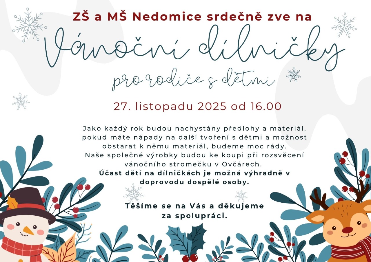 v pondělí 1. září 2025 začíná nový školní rok. Slavnostní zahájení se bude konat od 8 hodin ve třídě paní učitelky Hámoňové. Školní družina je v provozu